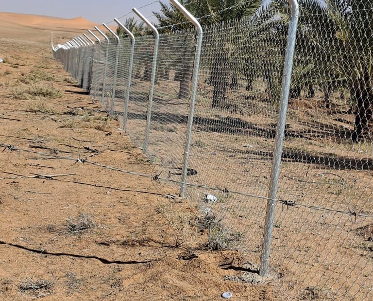 تركيب شبوك حماية للمباني الحكومية، الأراضي، الاستراحات والمشاريع الخاصة، باستخدام مواد قوية مقاومة للصدأ والتآكل.