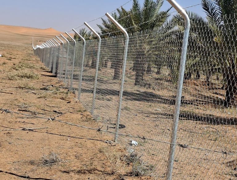 تركيب شبوك حماية للمباني الحكومية، الأراضي، الاستراحات والمشاريع الخاصة، باستخدام مواد قوية مقاومة للصدأ والتآكل.